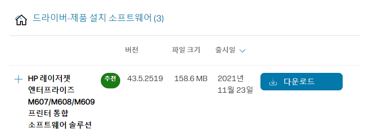 이번 글에서는 HP 레이저젯 엔터프라이즈 M608dn 프린터 드라이버 다운로드 설치방법을 알아보았습니다.
