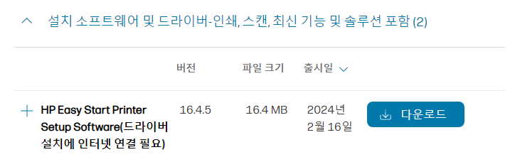2. 설치 소프트웨이 및 드라이버- 인쇄, 스캔, 최신 기능 및 솔루션 포함 다운로드를 클릭하여 다운로드합니다.