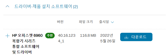 2. 드라이버-제품 설치 소프트웨어 다운로드를 클릭하여 다운로드합니다.