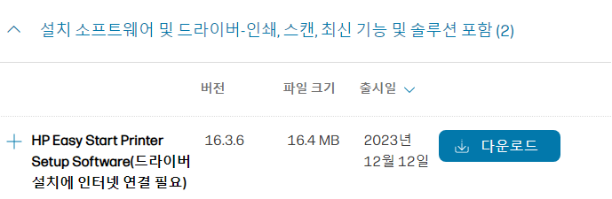 2. 설치 소프트웨이 및 드라이버- 인쇄, 스캔, 최신 기능 및 솔루션 포함 다운로드를 클릭하여 다운로드합니다.